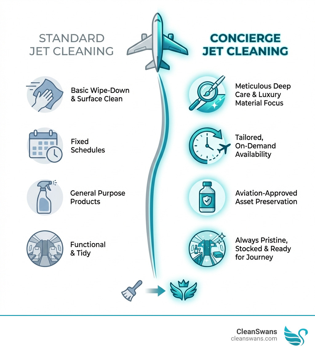 Infographic explaining the key differences between standard and concierge jet cleaning - concierge jet cleaning infographic