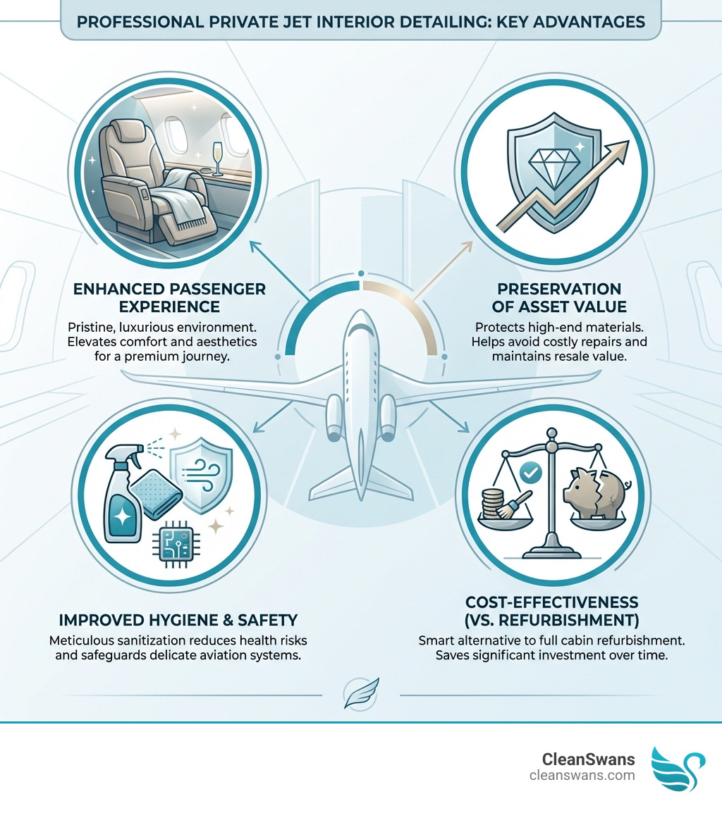 A private jet is a significant investment. Its interior reflects the owner’s standards. Professional detailing protects this investment. It also lifts the passenger experience to the highest level. As the Founder of CleanSwans, I have extensive experience providing white-glove service for high-value assets. This includes a deep understanding of private jet interior detailing and the meticulous standards it requires. This guide will explore the ins and outs of keeping your private jet in pristine condition.